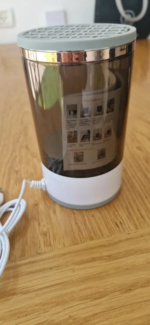 Simply plug it in, attach your brush, and let it spin clean. It's easy and efficient, ensuring spotless brushes every time.